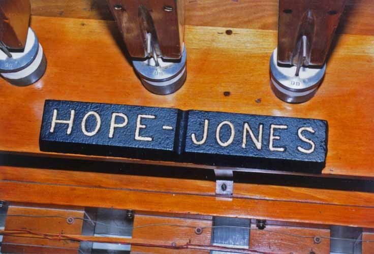 This is a genuine Hope-Jones weight. It is about 18" long and weighs 25 pounds. The chest it is sitting on is in the Solo and is part of the 8' offset of the Tuba Mirabilis.