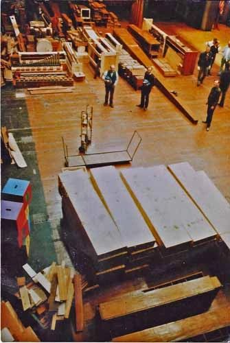 This and the following picture were taken in 1986 when the organ was unloaded from the semi and a panel truck and brought onto the stage in the theatre.